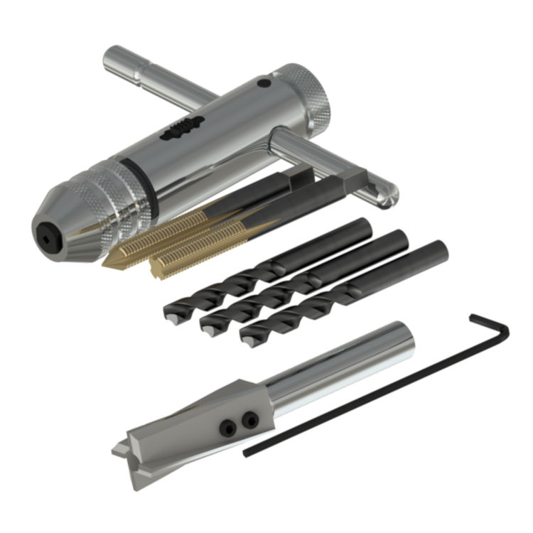 - 0.625” (15.875 mm) End Mill Diameter for 1/4-28 Thread with Tap Set